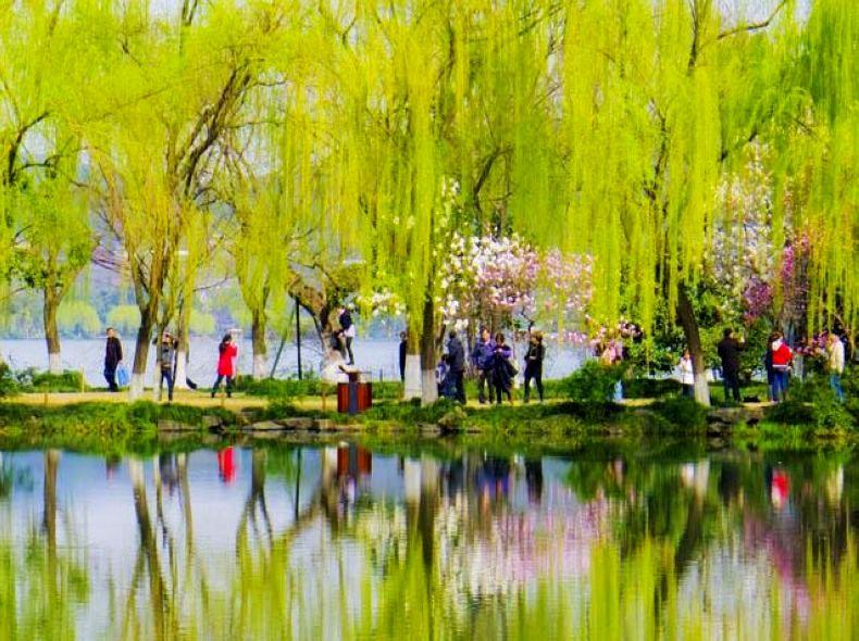 柳浪闻莺公园,地处西湖东南隅湖岸 ,占地约二十一公顷。