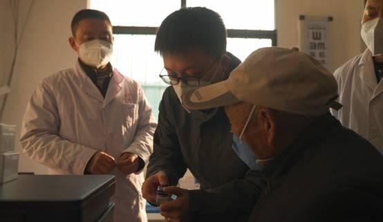 夏院长和王尚念给当地的村医详细讲解了血氧饱和度的意思,并现场测了一位老乡的血氧:“如果血氧饱和度两次读数都低于94%,就需要尽快送到卫生院进一步诊断。”