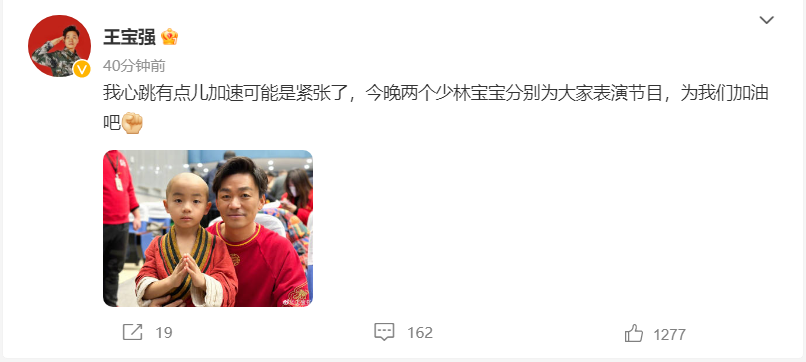 王宝强晒两个少林宝宝春晚合影(王宝强说再上春晚非常亲切)